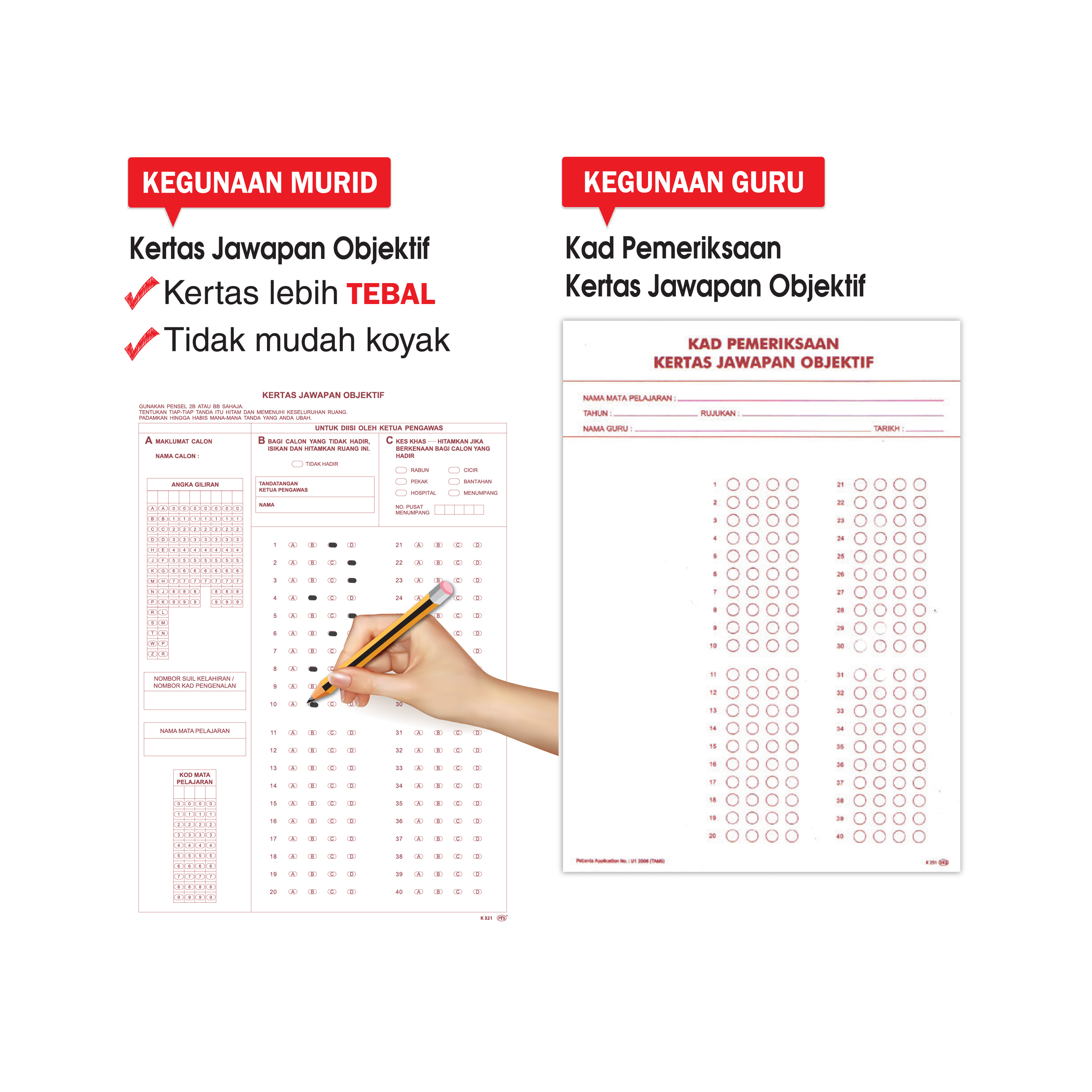 1.  250 keping Kertas Jawapan Objektif