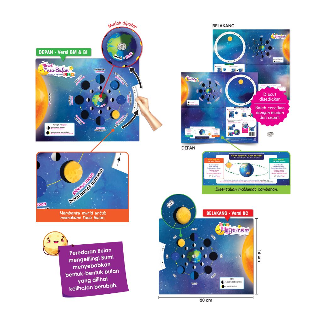 - Dicetak dua muka iaitu berwarna (depan) dan satu muka tidak berwarna (belakang) yang boleh diwarna mengikut kreativiti dan imaginasi murid.